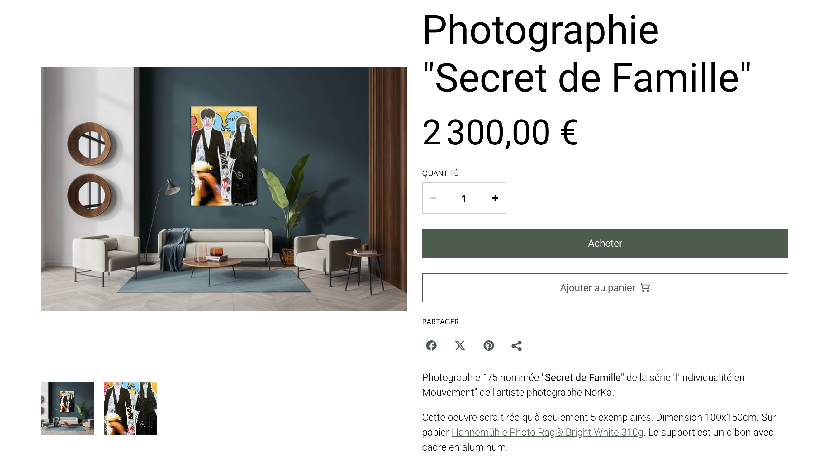 Les tirages proposés sont réalisés en éditions limitées, numérotés, signés et accompagnés d’un certificat d’authenticité. Chaque œuvre est pensée pour conserver son unicité et sa valeur.
